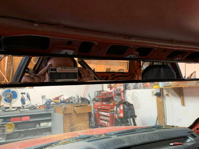 To replace them, I put in a cheap wink-style segmented mirror from Summit Racing. This should give me enough of a panorama that I might be able to get away without the side mirrors.