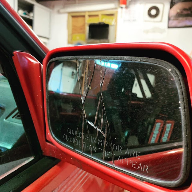 On another note, the passenger mirror glass was flopping around a lot and was basically un-usable, so I figured maybe it came un-clipped. I gave it a little press back into it's spot and it rewarded me with a nice *CRACK*.